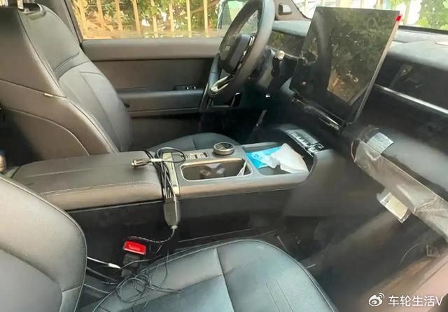 內飾上面的話,從目前的信息來看,比較簡約,依然是有懸浮式的中控大屏,在大屏下面有物理按鍵的加入,扶手箱區域有一個旋鈕式的機構,不知道是換擋機構還是駕駛模式選擇。